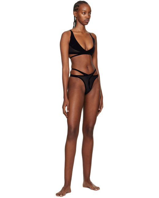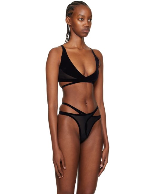 Paneled flocked polyester velvet and stretch nylon mesh bra. · Wrap construction · Adjustable shoulder straps · Tab-slot fastening at back · Unlined Supplier color: Black