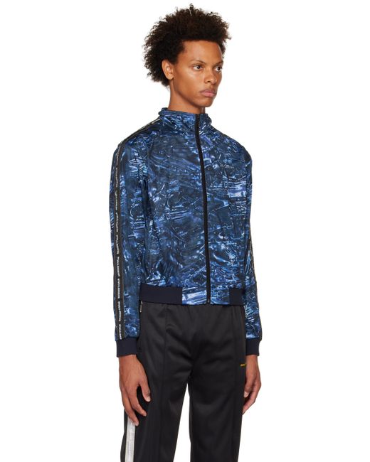 Polyester fleece jacket. Pattern printed throughout. · Stand collar · Zip closure · Logo embroidered at chest · Welt pockets · Rib knit hem and cuffs · Logo-printed faille trim at sleeves Supplier color: Blue