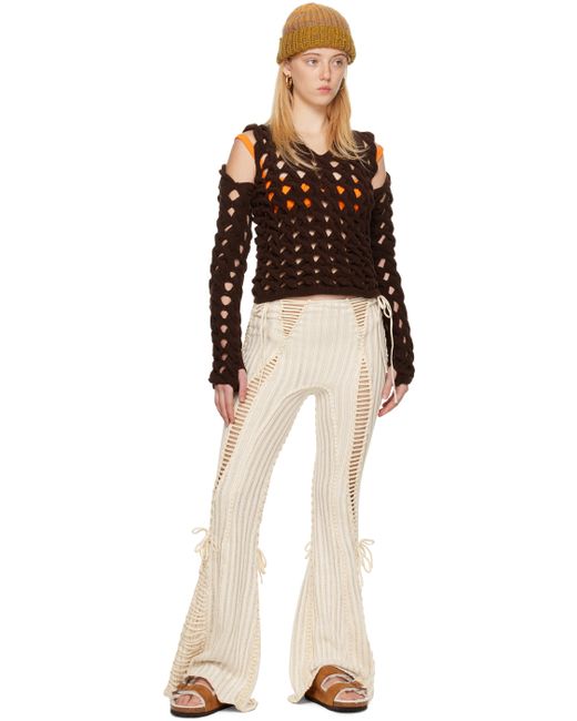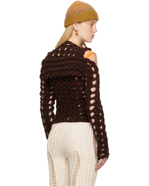Handcrafted open cable knit stretch rayon sweater. · Rib knit hem · Detachable bolero-style sleeves Available exclusively at SSENSE. Supplier color: Soil
