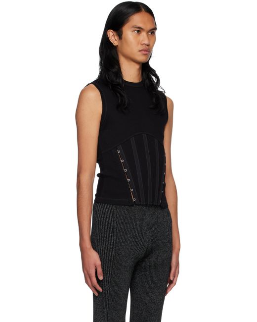 Rib knit stretch organic cotton tank top. · Crewneck · Boning at front · Twin vents with hook-eye closure at front hem Supplier color: Black