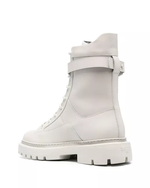 white leather detachable cuff logo-buckle detail branded footbed almond toe front lace-up fastening chunky rubber sole