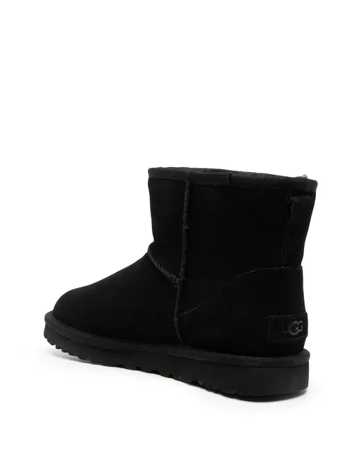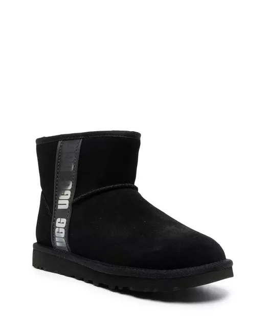 jet black wool blend/recycled polyester/calf suede logo-tape detailing shearling lining ankle-length round toe pull-on style rubber lug sole