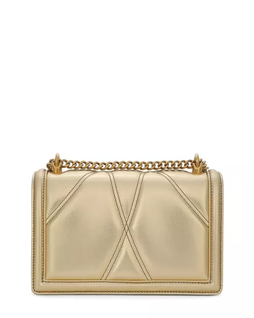 gold-tone calf leather/lambskin quilted metallic effect signature Sacred Heart plaque foldover top clasp fastening sliding chain-link shoulder strap main compartment internal zip-fastening pocket internal logo plaque leather lining This piece comes complete with a protective dust bag.
