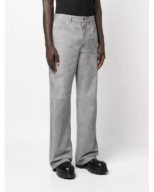 flared-leg jeans from AMIRI featuring beluga grey, belt loops, front button and zip fastening, classic five pockets, flared, full-length and ovine leather.