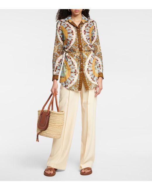 Closure: self-ties, buttoned front. Belt loops, Self-tie belt, Detachable belt. Made in China. Designer color name: Brown Greek Garden. Material: 100% cotton. Care instructions: hand wash.