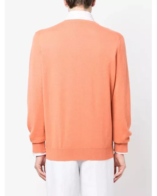 light orange cashmere fine knit V-neck long sleeves ribbed hem