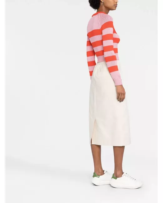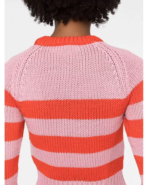 rose pink/orange virgin wool horizontal stripe pattern cut-out detailing long sleeves straight hem
