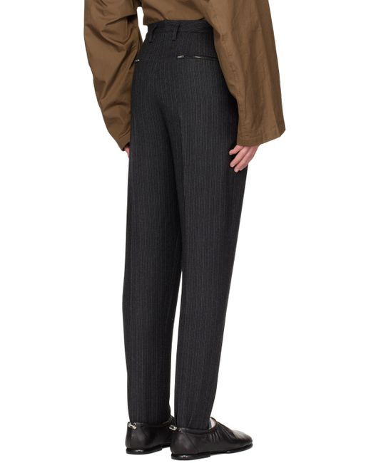 Virgin wool twill trousers. Stripes throughout. · Belt loops · Five-pocket styling · Zip-fly · Twin darts at front and back · Central creases at front and back · Stirrup at elasticized cuffs Supplier color: Gray pinstripe