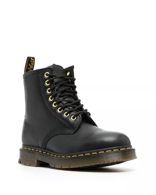 black calf leather contrast stitching front lace-up fastening logo pull-tab at the heel round toe Goodyear welt