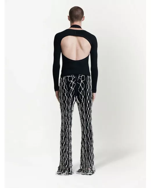 black stretch-cotton cut-out detailing open back crew neck long sleeves straight hem