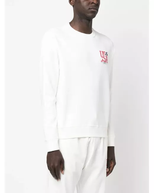 red/white/blue cotton logo print at the chest logo print to the rear crew neck long sleeves straight hem
