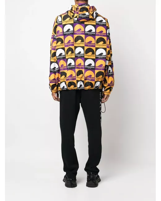 multicolour all-over logo print classic hood front zip fastening long sleeves elasticated hem