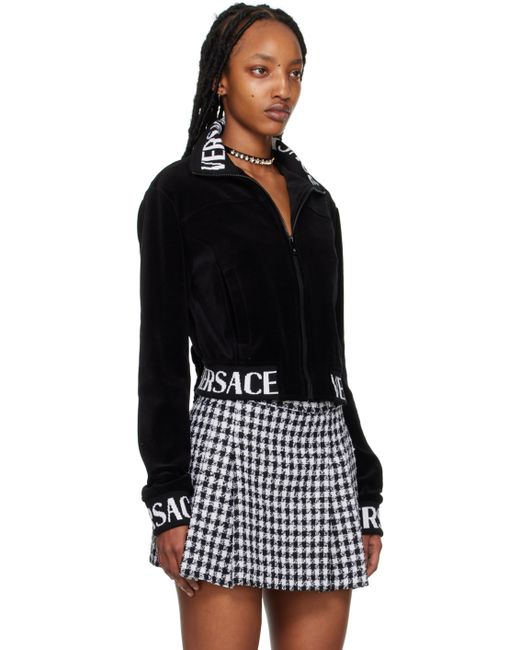 Cotton and polyamide-blend velvet sweatshirt. Logo-woven rib knit stretch wool and polyamide-blend trim throughout. · Paneled construction · Spread collar · Zip closure · Welt pockets · Cropped hem · Full logo-woven satin lining · Logo-engraved black hardware Supplier color: Black