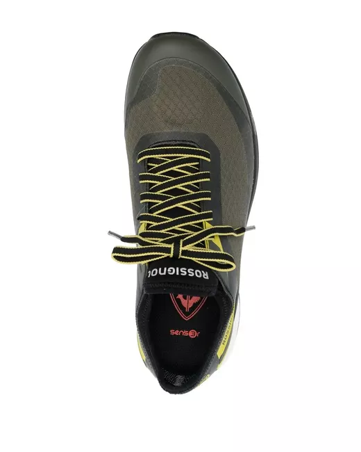 black/yellow/white side stripe detailing branded heel counter logo print to the side WR/TEX membrane Sensor3 inserts front lace-up fastening branded footbed round toe flat rubber sole