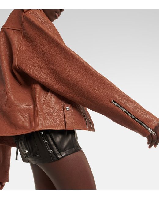 This jacket from David Koma is made from leather in a slightly oversized silhouette with zipped cuffs. The biker-inspired style features several pockets, eyelet detailing, and epaulettes on the shoulders.