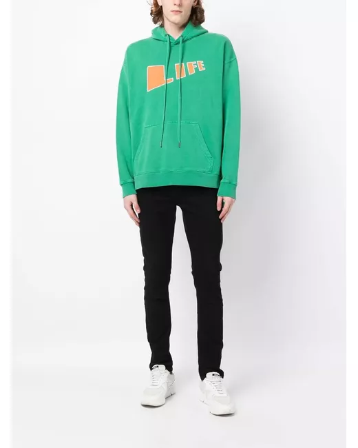 green/orange cotton graphic print to the front graphic print to the rear drawstring hood long sleeves straight hem front pouch pocket