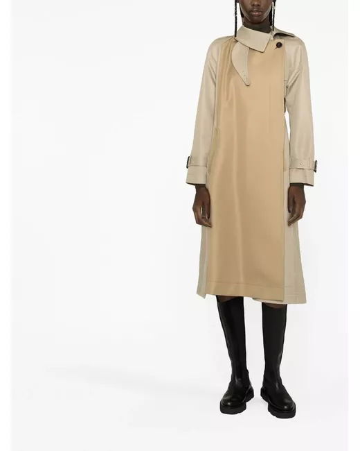 light brown/beige two-tone design cotton blend high neck belted waist long sleeves buttoned cuffs straight hem
