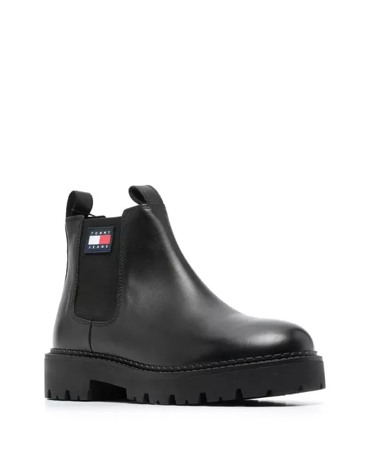 black calf leather logo patch to the side elasticated side panels pull-tab at the heel pull-tab at the tongue round toe chunky rubber sole