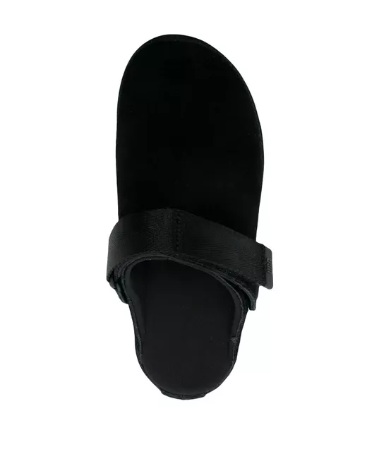 black calf suede front touch-strap fastening adjustable strap to the front logo patch to the side round toe slip-on style flatform sole