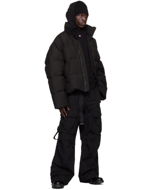 Down-filled quilted cotton and polyester-blend ripstop jacket. · Stowaway hood at funnel neck · Zip closure · Welt pockets · Concealed bungee-style drawstring at hem and cuffs · Logo quilted at back · Welt pocket at interior · Full nylon satin lining Supplier color: Black Fill: 90% duck down, 10% duck feather.
