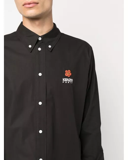 black cotton poplin texture signature Boke Flower motif embroidered logo at the chest button-down collar front button placket long sleeves buttoned cuffs curved hem