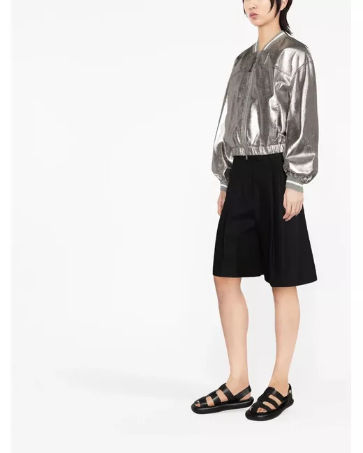 silver-tone cotton metallic finish band collar long sleeves front zip fastening two side slit pockets