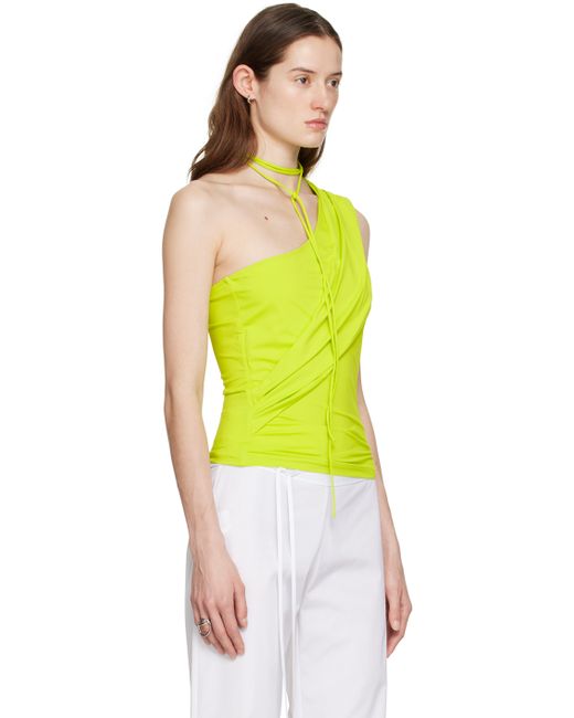 Lightweight and breathable stretch recycled nylon jersey tank top. Draping throughout. · Single-shoulder construction · Wraparound self-tie straps Supplier color: Neon green