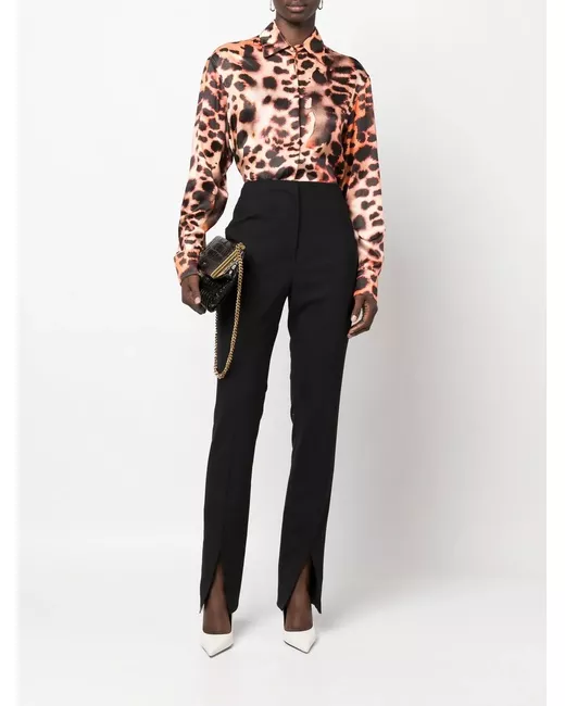 light orange/chocolate brown silk all-over leopard print classic collar concealed front button fastening buttoned cuffs