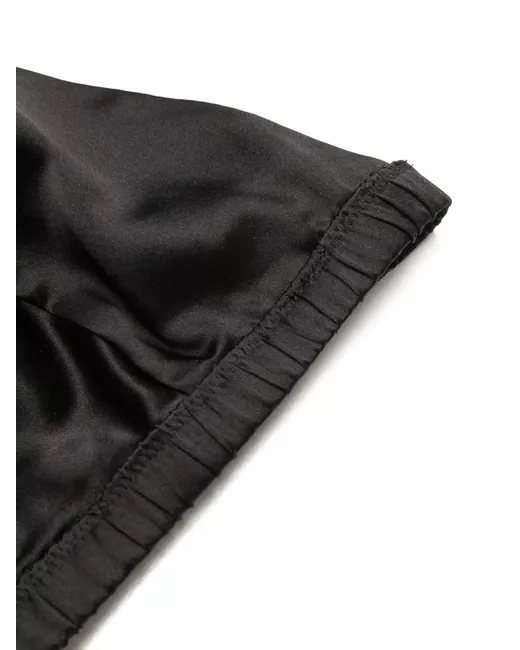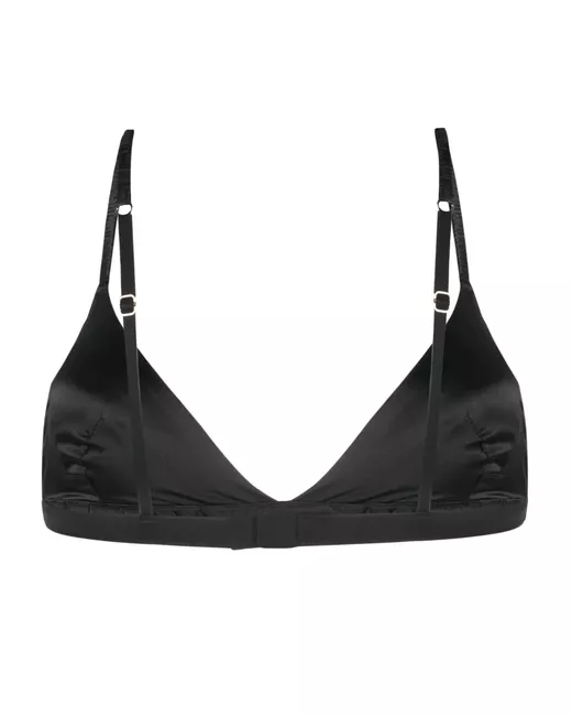 black silk triangle cup elasticated underband adjustable shoulder straps rear hook and eye fastening