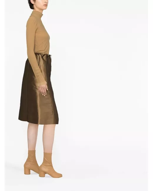 brown drawstring fastening waist high-waisted A-line mid-length straight hem