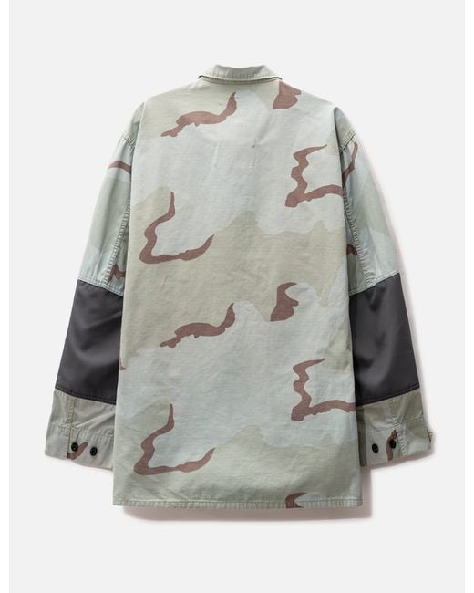 OAMCRE:WORK BDU JacketReworked and upcycled materials from vintage US BDU jackets in all-over desert camoGarment-dyedZip closureRound aluminum logo pin at chestFour pockets at frontContrasting panels at elbowDue to the nature of reworked and upcycled pieces, slight variations in colors and patterns are expectedColor: Aruba Blue