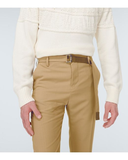 Material: 70% polyester, 30% wool. Made in Japan. Closure: zipper fly, button fastening. Designer color name: Beige. Material II: 100% cupro. Pockets: side slit pockets, back pockets. Care instructions: dry clean. Pocket lining: 100% cotton.