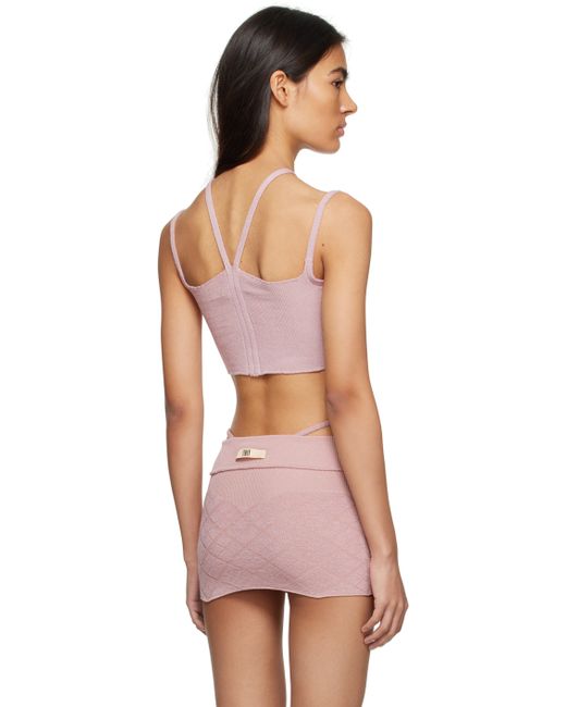 Knit stretch viscose-blend tank top. Metallic thread detailing throughout. · Halter strap · Rib knit hem · Fixed spaghetti straps Supplier color: Pink