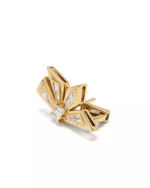 18kt yellow gold baguette cut diamonds trillion cut polished finish post-back fastening for pierced ears Please consider that this is sold as a single earring. Normal everyday use and external agents may reduce the lustre of gemstones and gold surfaces. To maintain, use specific, non-abrasive products specially meant for cleaning jewellery.