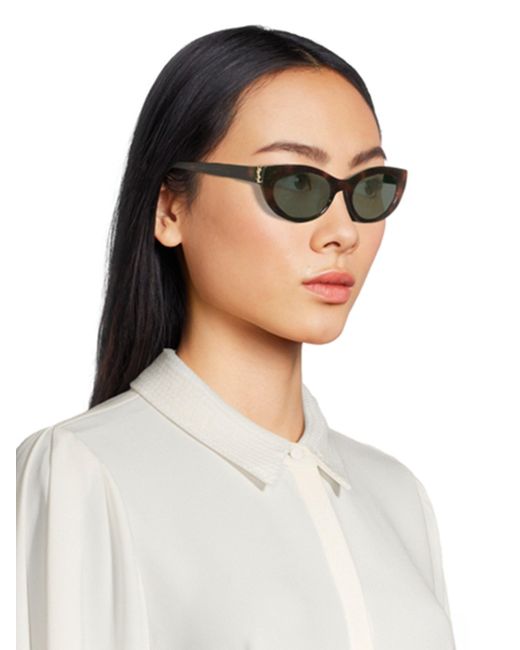 From the Monogram Hinge Acetate Collection. Saint Laurent's cat eye sunglasses are crafted of sleek tortoiseshell-printed acetate. This pair is finished with a YSL monogram detail at the temples. 100% UV protection Gradient lenses Case and cleaning cloth included Acetate/nylon Made in Italy SIZE 54mm lens width 20mm bridge width 140mm temple length ABOUT THE BRAND Founded in 1961, Yves Saint Laurent's groundbreaking styles have become iconic cultural and artistic references, and its founder, the couturier Yves Saint Laurent, secured a reputation as one of the twentieth century's foremost designers. Part of the Kering Group, the House kept true to its identity of absolute modernity and fashion authority. Under the creative direction of Anthony Vaccarello, appointed in April 2016, the House offers a broad range of women's and men's ready-to-wear products, leather goods, shoes, jewelry and eyewear. It is also a major force in fragrances and cosmetics. Soft Accessories - Sunglasses > Saint Laurent > Saks Fifth Avenue > Barneys. Saint Laurent. Color: Ivory.