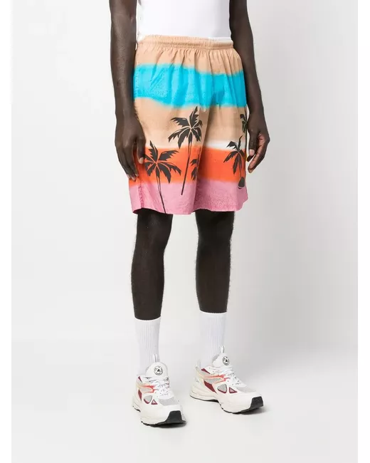 blue/multicolour cotton palm tree print tie-dye print elasticated waistband two side inset pockets When buying this unisex item, keep in mind that it is graded in standard men's sizing.