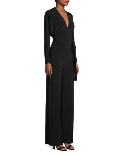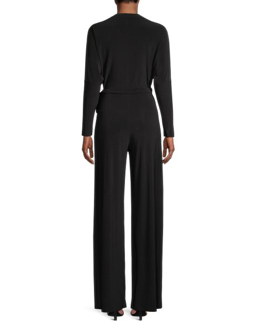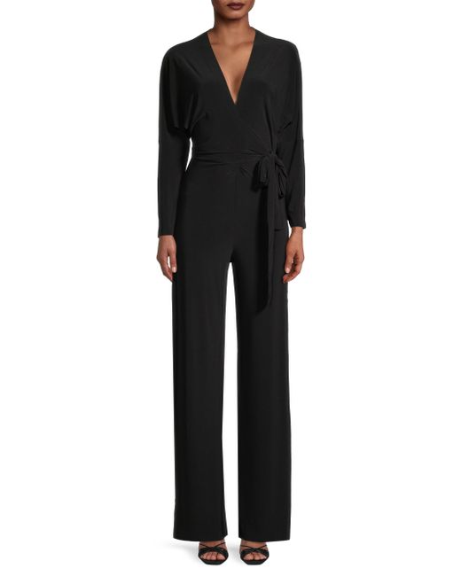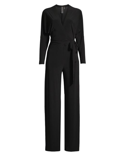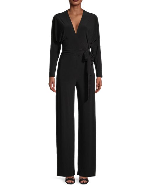 Norma Kamali's four-way-stretch jumpsuit features a plunging V-neck, long dolman sleeves, and a wrap silhouette. This draped piece is designed with a self sash at the waist. V-neck Long sleeves Waist self sash Pulls on 95% polyester/5% spandex Machine wash Imported SIZE & FIT Model measurements: 5'10" tall Model is wearing a US size Small. Dress Collections - Contemporary Evening > Norma Kamali > Saks Fifth Avenue > Barneys. Norma Kamali. Color: Black. Size: Medium.