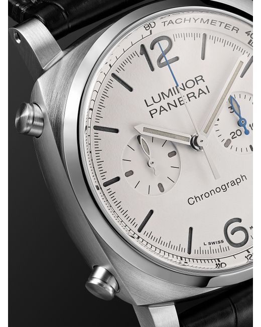 Panerai's 'Luminor' debuted in 1949, and was quickly after snapped up by the Italian and Egyptian naval forces for its impressive functionality. Ever advancing in technologies, this latest iteration is fitted with the new P.9200. automatic flyback chronograph movement, which employs a Glucydur® balance wheel and Incabloc® shockproofing to enhance performance. With pushers moved to the left side to balance the design, it bears the distinctive crown-protection device to the right of the stainless steel case, alongside a legible cutout sandwich dial through which the luminous numerals and indices glow. We offer a two-year warranty for all working parts and manufacturing faults for luxury watches. For more information, contact one of our experts by emailing [email protected]