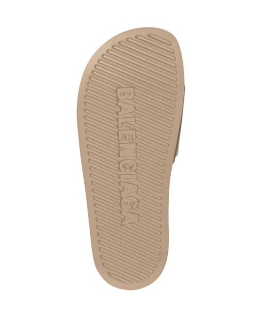 Pool Slide Sandal in rubber with white 3D Balenciaga logo. Slide sandal Molded rubber footbeds 3D Balenciaga logo on the strap Debossed Balenciaga logo under the sole 20mm arch Made in Italy Wipe with a soft clean cloth. Lsd Shoes - Balenciaga Shoes > Balenciaga > Saks Fifth Avenue > Barneys. Balenciaga. Color: Beige Black. Size: 5.