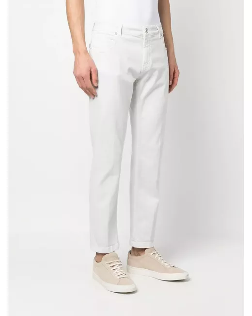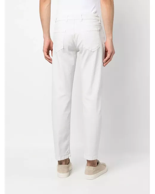off-white stretch-cotton mid-rise belt loops front button and zip fastening classic five pockets straight leg