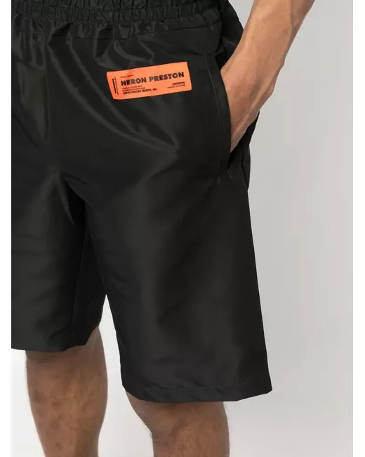 black/orange knee-length elasticated waistband two side inset pockets logo patch to the front rear jetted pocket