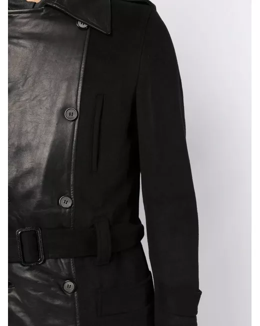 black wool-cashmere blend classic collar belted waist double-breasted button fastening two slit pockets at the chest two front flap pockets long sleeves straight hem