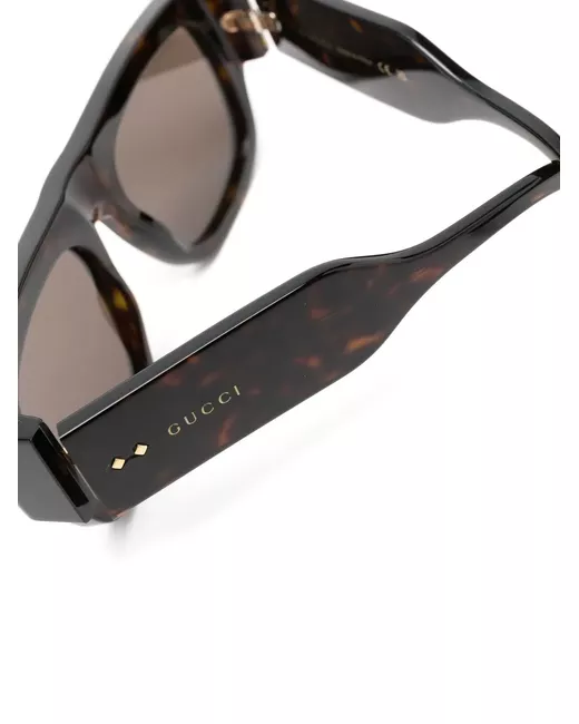 brown acetate tortoiseshell effect gold-tone logo lettering square frame brown tinted lenses curved tips These glasses come with a protective case.