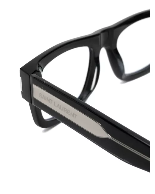 black acetate square frame clear lenses logo plaque at the arm straight arms All glasses from FARFETCH are sold as non-prescription frames. These glasses come with a protective case.