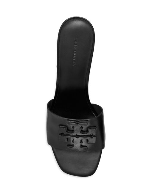 Tory Burch's Ines mules are crafted of smooth leather and topped with a tonal Double T appliqué. Leather upper Open toe Slips on Leather sole Imported SIZE Heel height, 2.25" (55mm). Women's Shoes - Tory Burch Womens Shoes > Tory Burch > Saks Fifth Avenue > Barneys. Tory Burch. Color: Black. Size: 7.