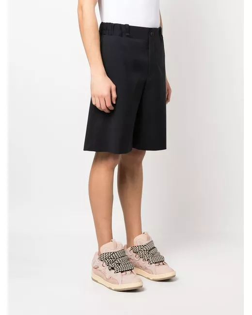 midnight blue wool blend tailored design elasticated waistband belt loops concealed fly and button fastening knee-length slip pockets to the sides two rear welt pockets