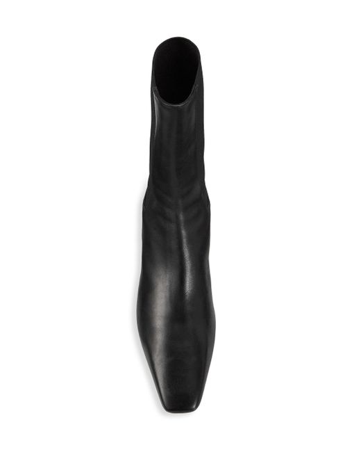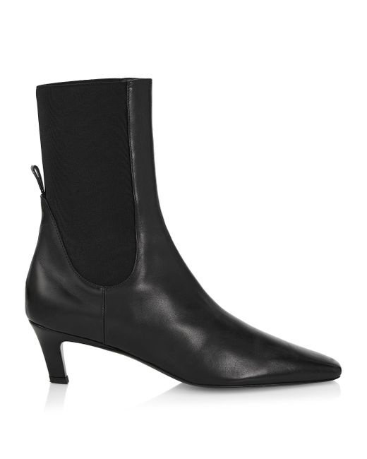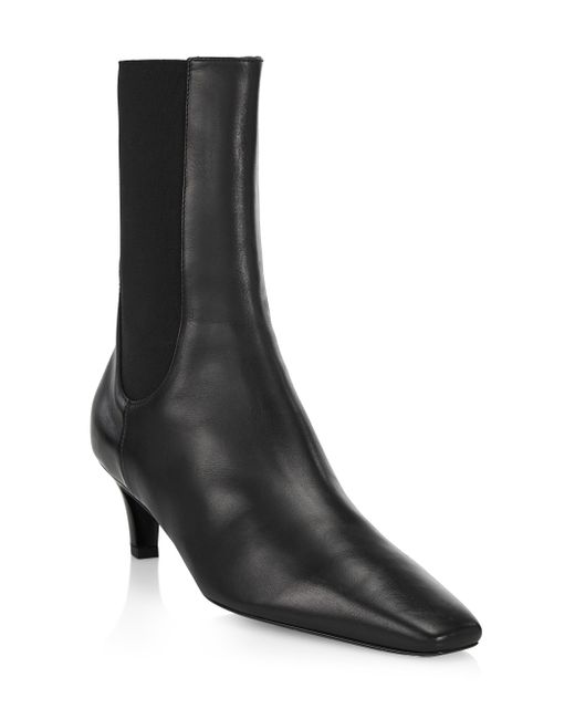 Totême's leather ankle boots feature a pointed square toe and a low kitten heel. Calf leather upper Square toe Pull-on style with elastic sides Calf leather sole Made in Italy SIZE Heel height, 2" (50mm). Women's Shoes - Designer Womens Shoes > Totême > Saks Fifth Avenue > Barneys. Totême. Color: Black. Size: 7.