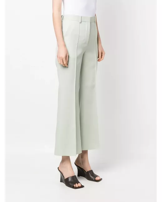 desert sage green virgin wool cotton tailored design high-waisted concealed front fastening belt loops two side slit pockets flared cropped leg