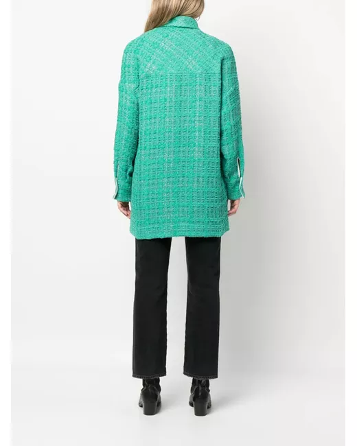 aqua green cotton blend chunky knit classic collar two chest patch pockets front button fastening long sleeves straight hem