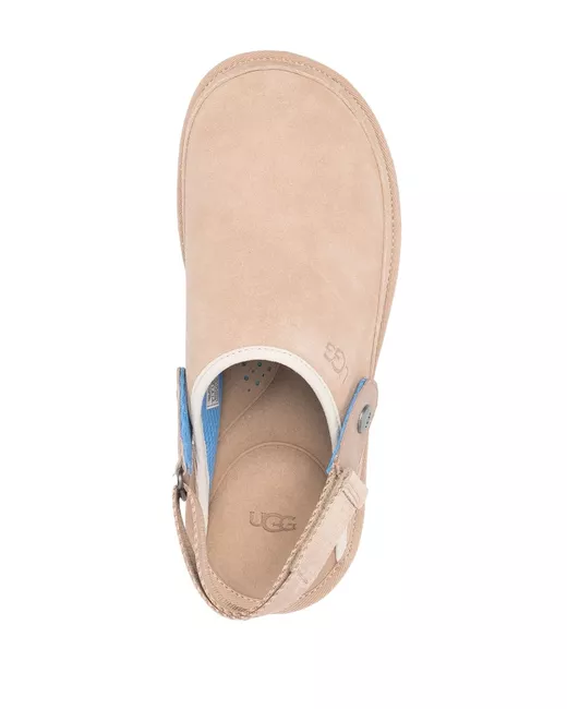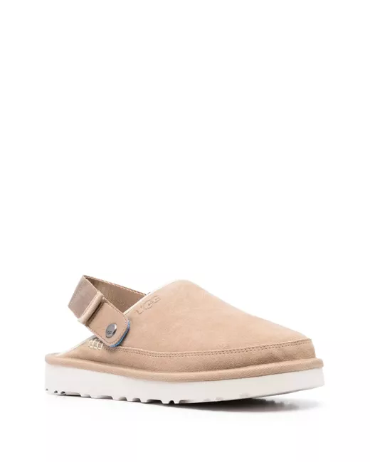 light beige calf suede debossed logo to the side slingback strap branded insole EVA midsole rubber sole